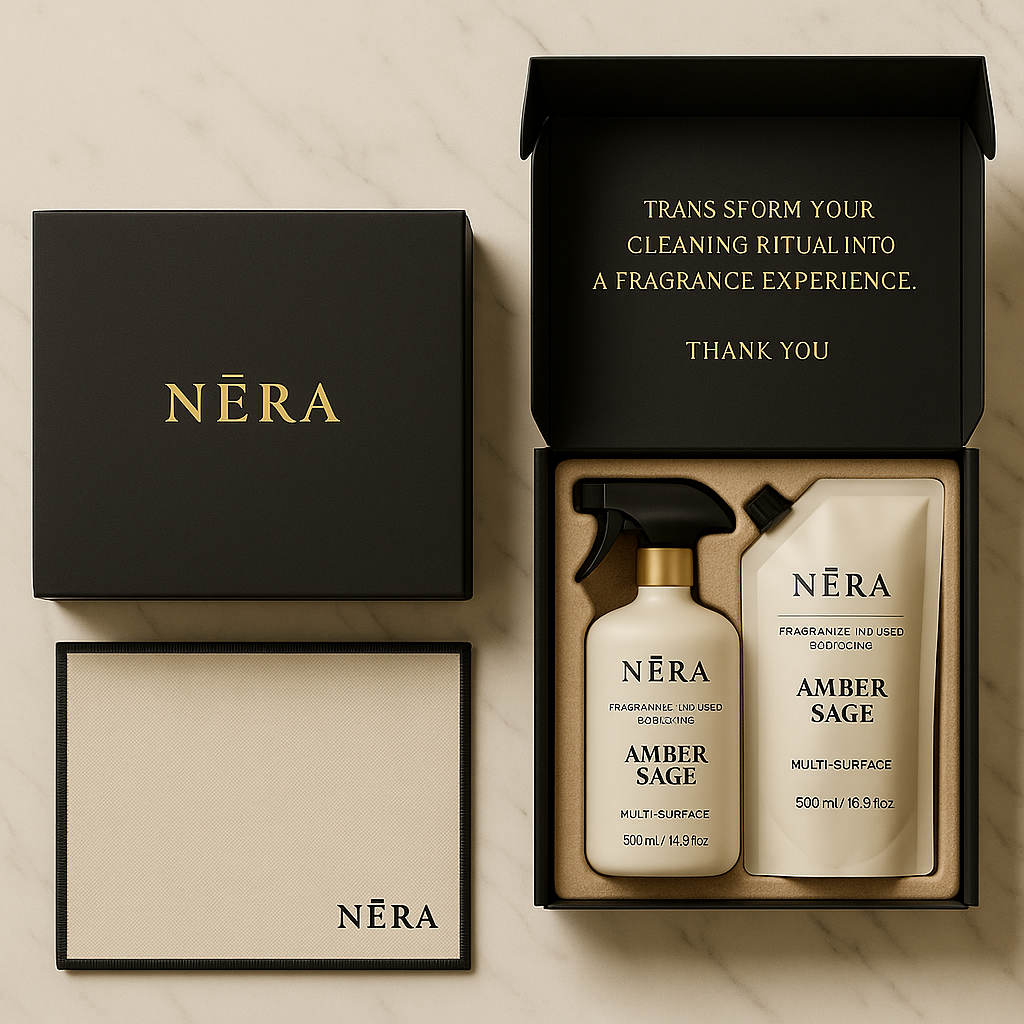 Sustainable, refillable, and infused with a golden citrus-floral scent, this duo keeps your home harmonised and your bottles beautiful for the long run.